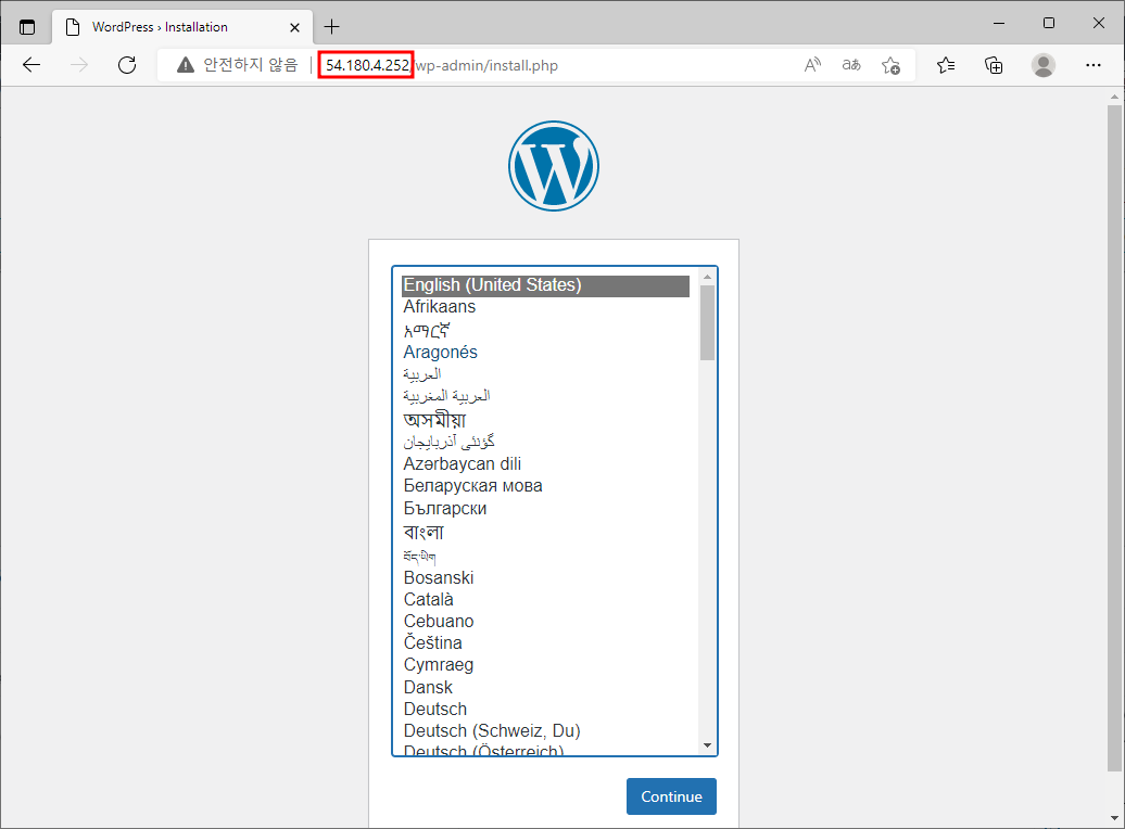 ※ 웹 브라우저 접속 후 워드 프레스 설치