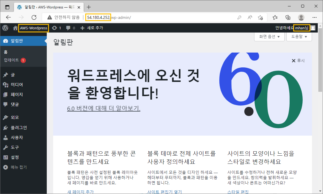 ※ 워드프레스 접속 페이지 확인