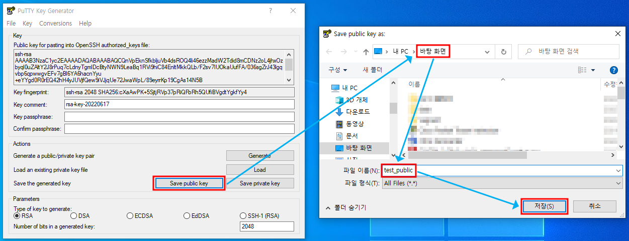 ※ Save public key 클릭하여 저장