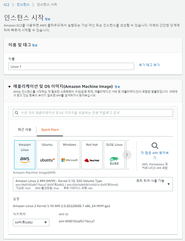※ EC2 서비스에서 인스턴스 선택 → 인스턴스 시작
