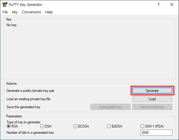 ※ 사이트 접속하여 puttygen.exe 다운로드