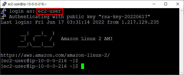 ※ 생성한 키 페어 이용하여 접속 성공