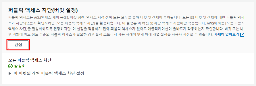 ※ 퍼블릭 액세스 읽기 권한 모두 주기