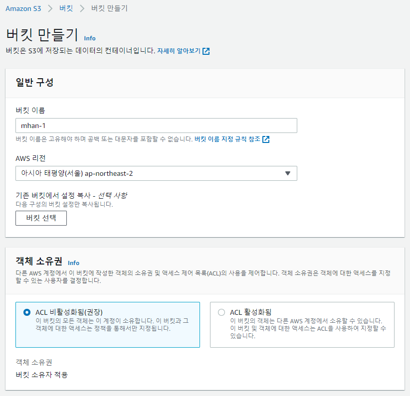 ※ 버킷 선택 → 권한 → 객체 소유권 편집