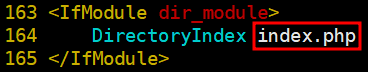 sed -i 's/DirectoryIndex index.html/DirectoryIndex index.php/g' /etc/httpd/conf/httpd.conf