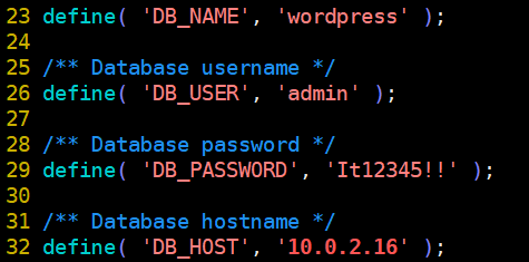 # vi /var/www/html/wp-config.php