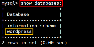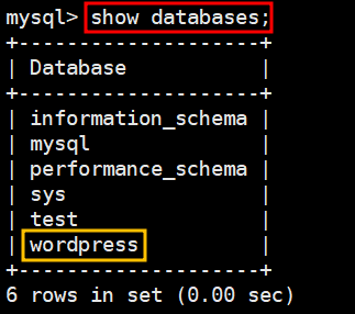 mysql> create database wordpress;