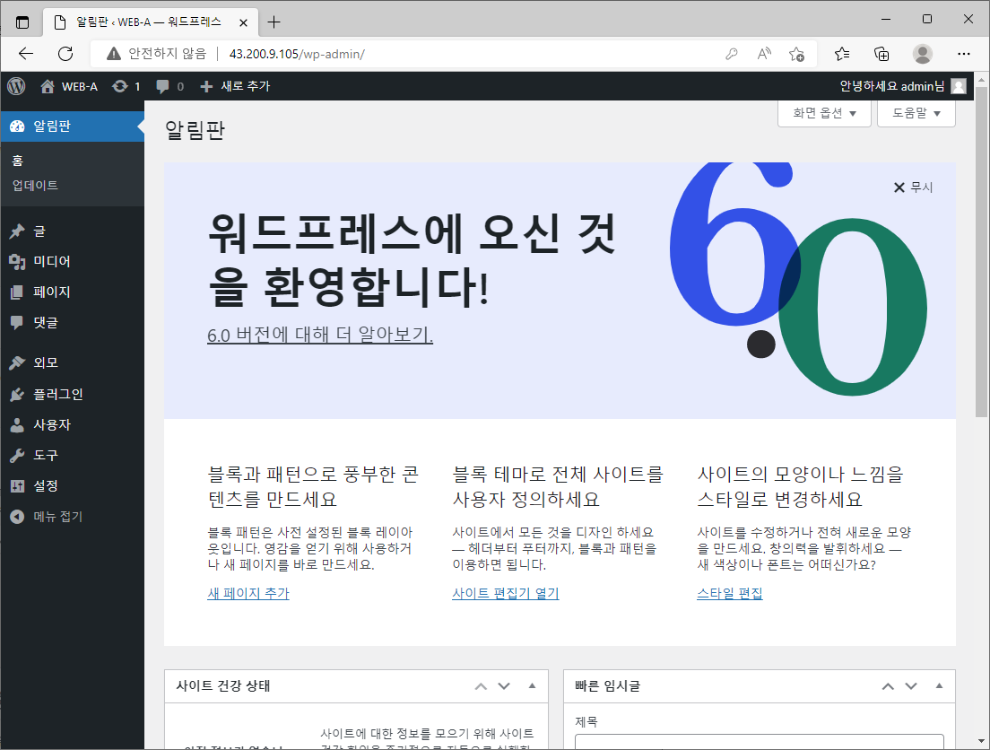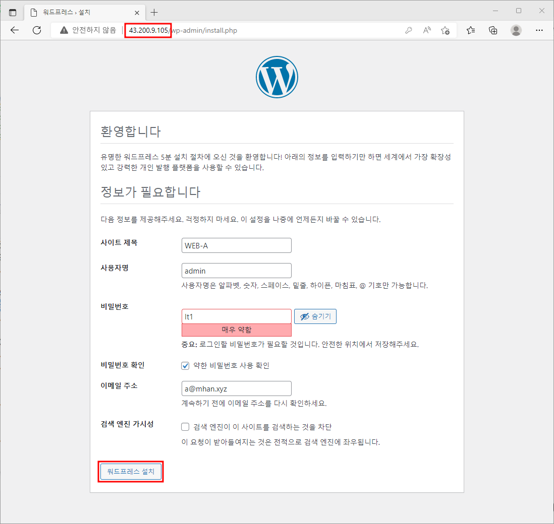 2.1. WEB-A Wordpress 설치 및 설정