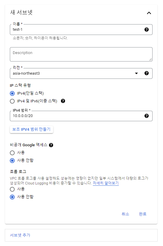 ※ IPv4 범위 10.0.0.0/20으로 VPC 생성