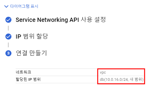 ※ 비공개 IP 선택 후 비공개 액세스 연결 설정