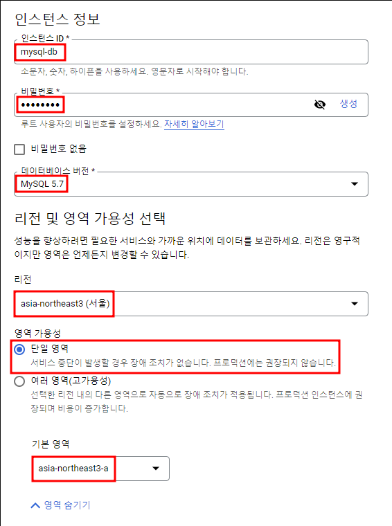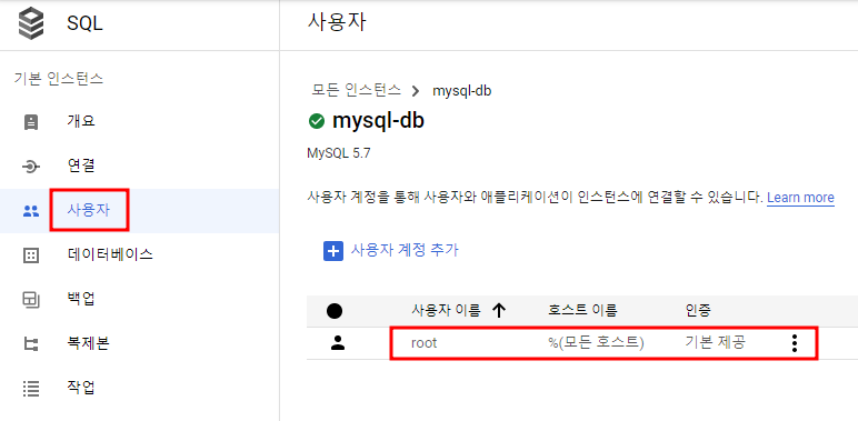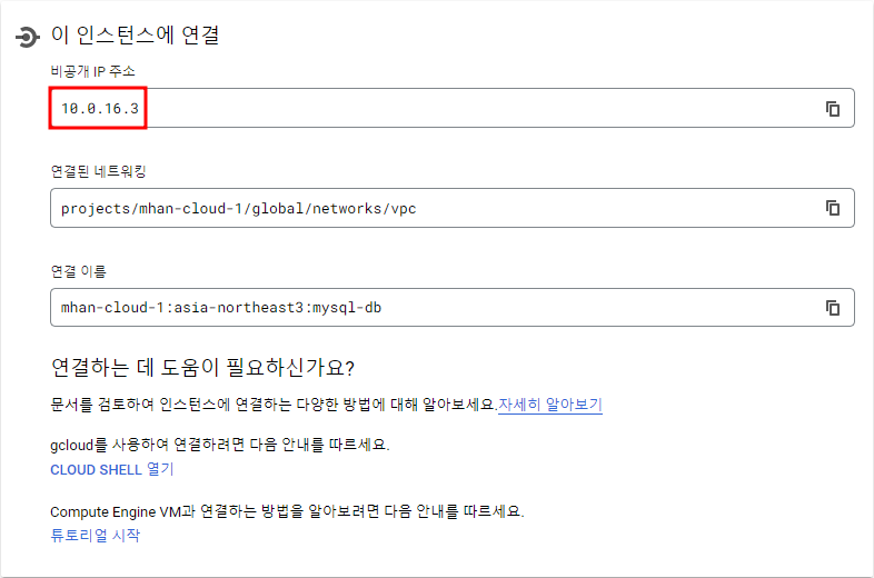 ※ DB와 연결할 인스턴스의 외부 IP 입력