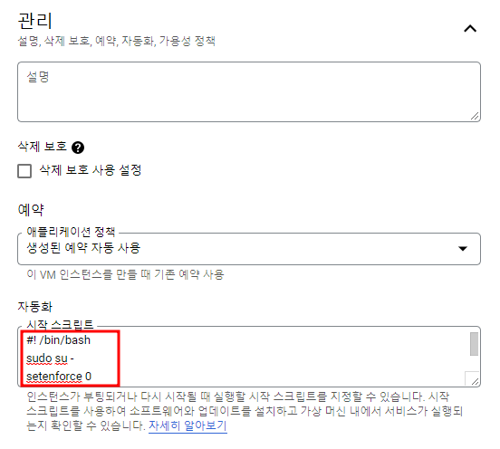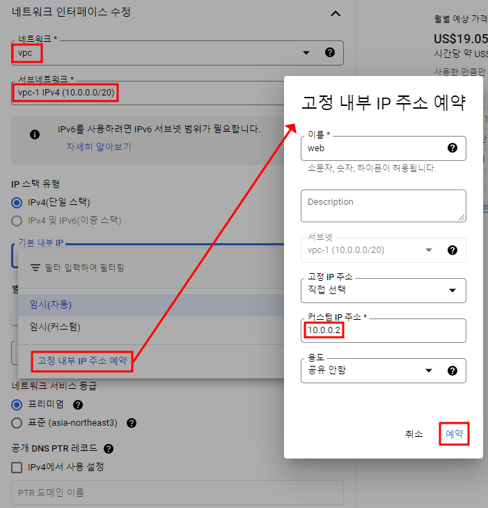 ※ 인스턴스 생성 시 고정 내부 IP 주소 예약 (안해도 무방하다.)