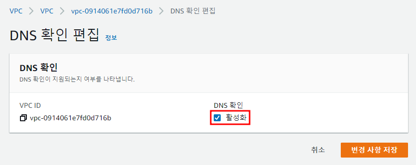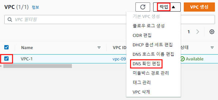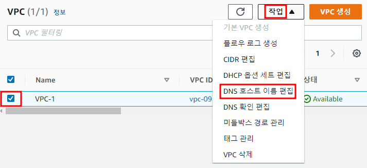 ※ VPC → 작업 → DNS 확인 편집