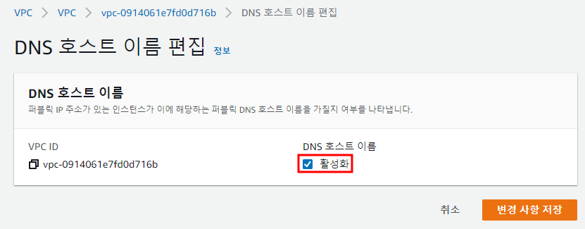 ※ VPC → 작업 → DNS 호스트 이름 편집