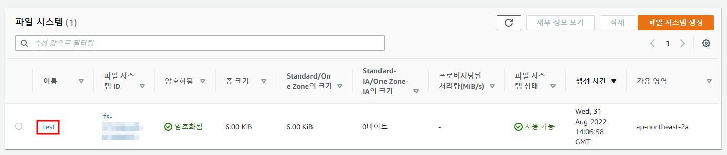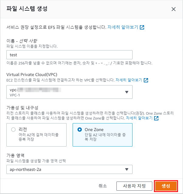 ※ EFS 파일 시스템 생성 클릭