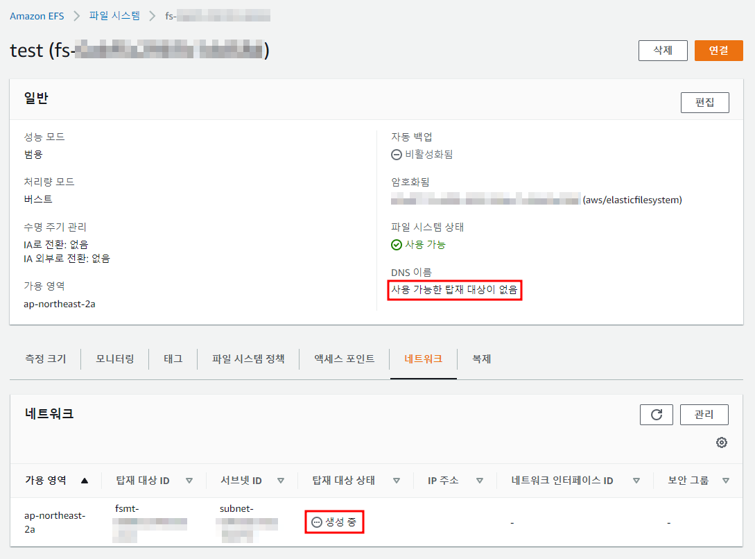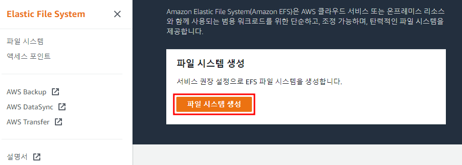 ※ AWS 콘솔에서 EFS 서비스 검색