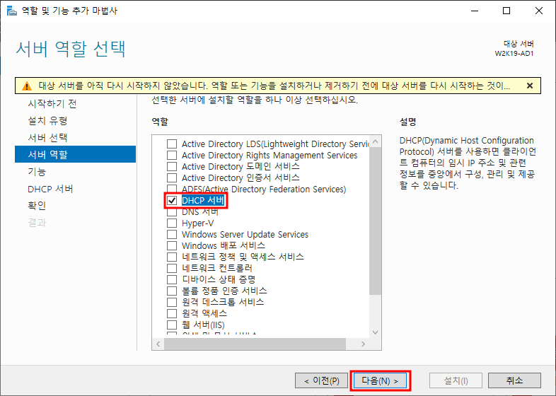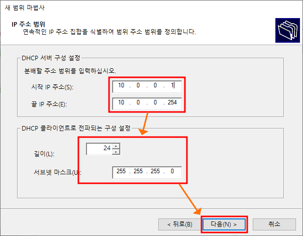 ※ 다음 클릭하여 DHCP 범위 추가 완료
