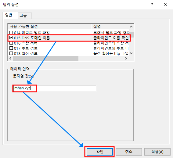 ※ 도메인 이름 및 DNS 서버 (자동 입력)