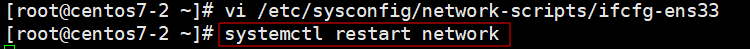 ※ /etc/sysconfig/network-scripts/ifcfg-ens33 파일 수정하여 네트워크 설정 수정 및 네트워크 재시작