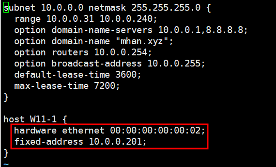 - default-lease-time, mas-lease-time 설정
