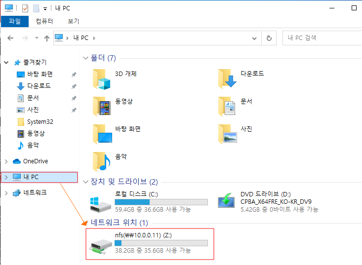 ※ nfs Server 디렉토리를 z드라이브에 마운트