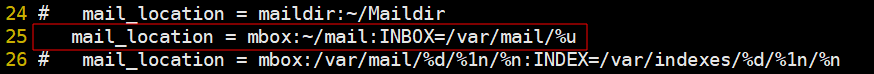 ※ /etc/dovecot/conf.d/10-auth.conf 파일 설정 (메일사서함 위치 지정)