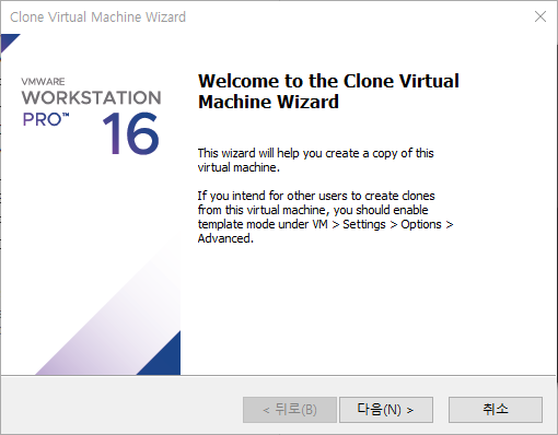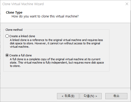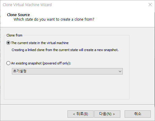 1. 현재 상태의 가상머신을 복제할 것이므로 위 라디오버튼 선택