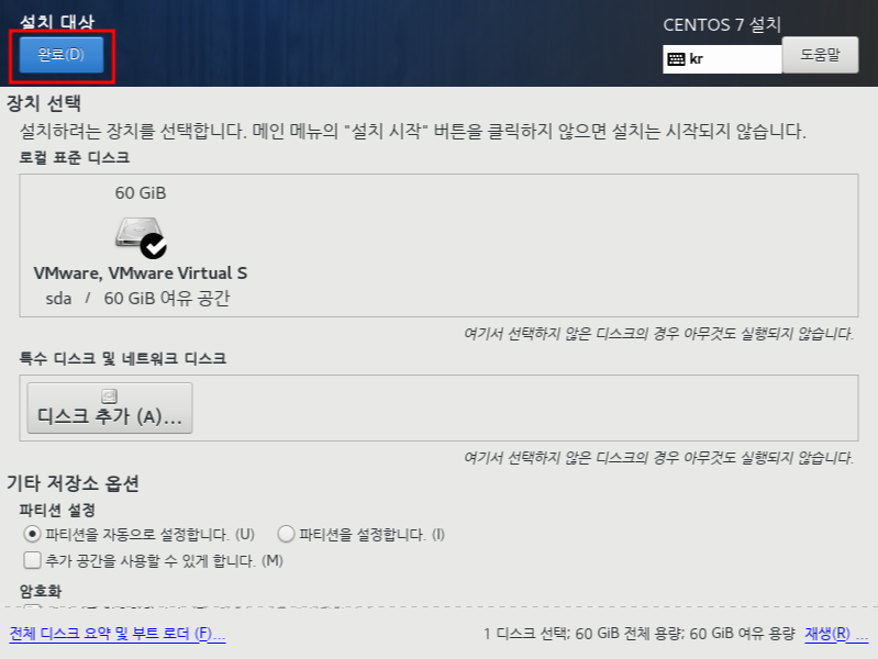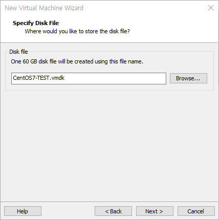 - 사이즈 60GB, 동적할당, single file 로 생성