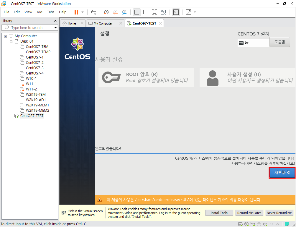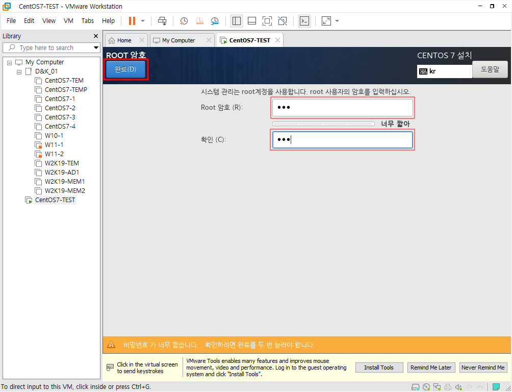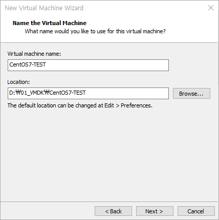 가상머신 이름 및 저장 경로 설정 후 마침.