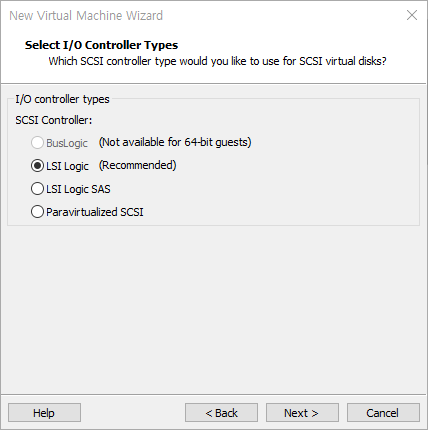 I/O 컨트롤러 타입, 디스크 타입 Recommended 선택