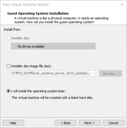 - 빈 하드디스크를 생성 후 나중에 IOS를 설치할 것이므로 3번째 선택