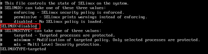 - 위 경로의 selinux 설정 파일을 vi 편집기로 open