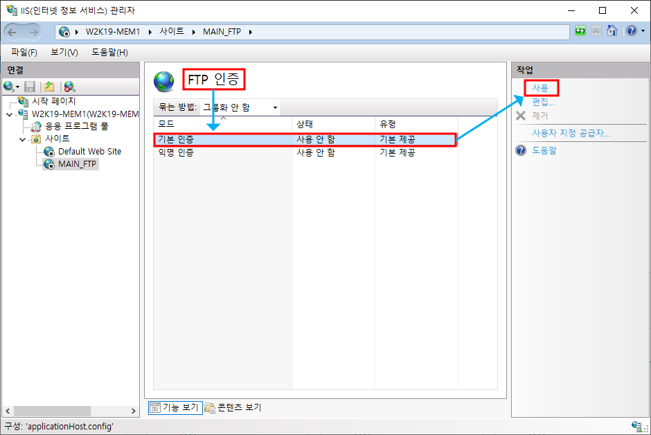 - FTP 권한 부여 규칙. FTP 인증은 같이 설정해야 함
