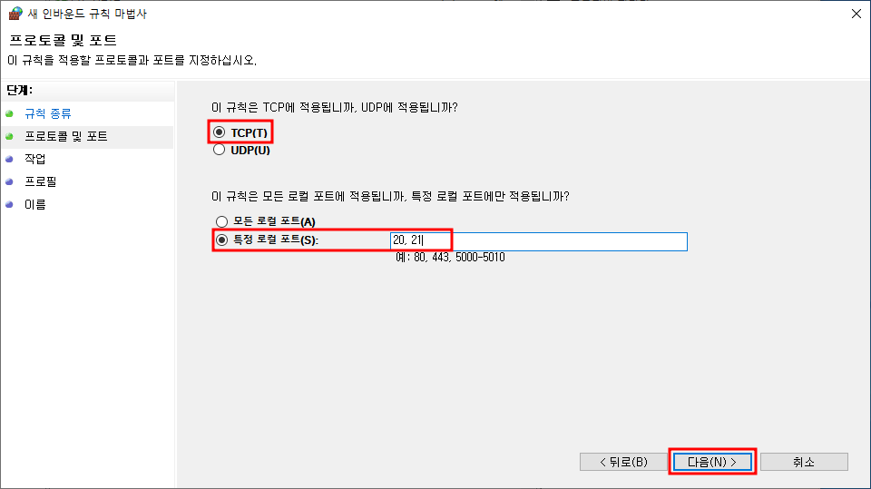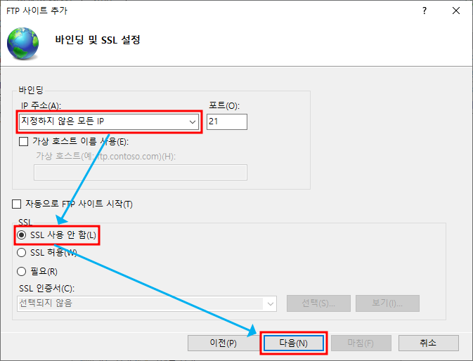 - FTP 루트 디렉터리: 모든 사용자에 대해서 FTP 루트 디렉터리로 접속