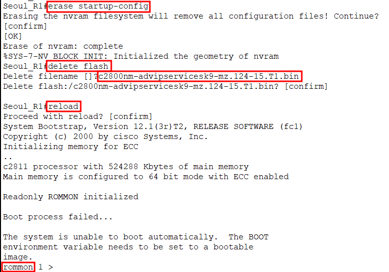 - rommon 모드 들어가기