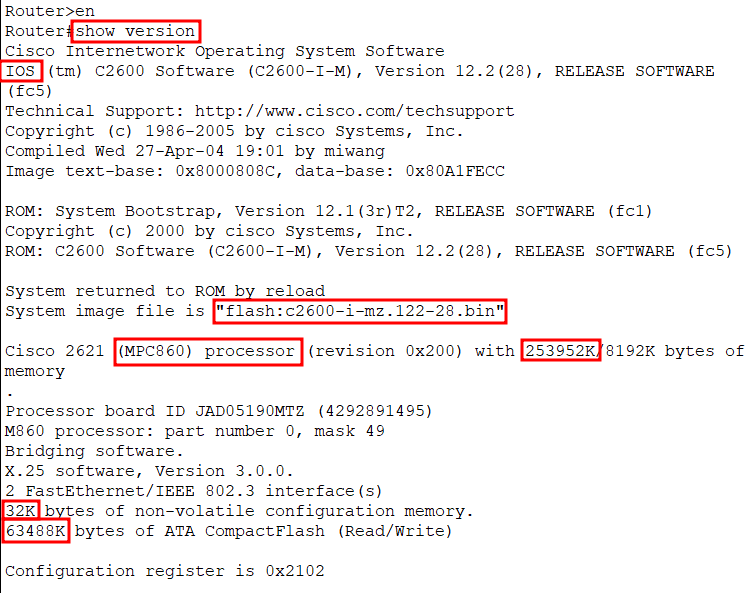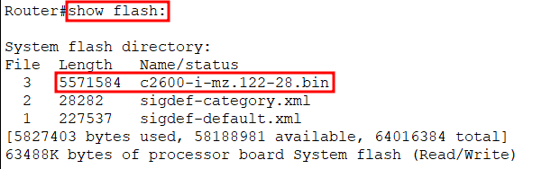 - "flash:c2600-i-mz.122-28.bin" : ISO의 이름 (flash 메모리에 저장)
