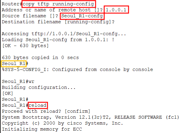 - 서버의 running-config 설정 파일 라우터로 가져와서 적용하기