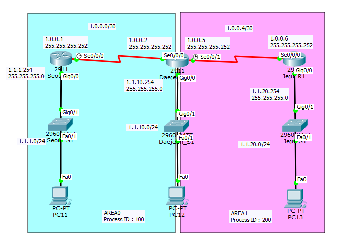 area 넘버가 같아야만 라우팅 테이블 교환 (area0;backbone area의 경우 제외)