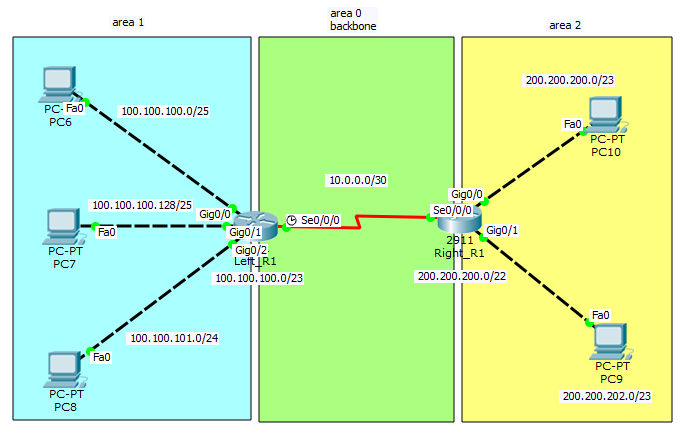 network 100.100.100.128 0.0.0.127 area 1