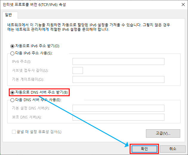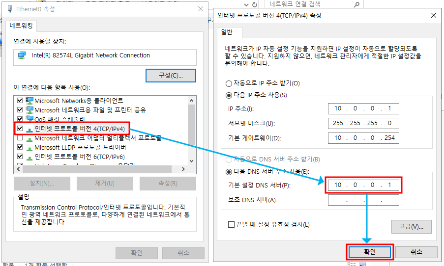 ※ 네트워크 연결 설정 → IPv4 DNS 서버의 IP로 변경