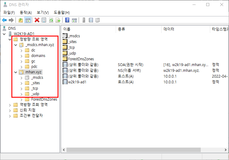 ※ DNS 확인 - DNS에서 정방향 조회 영역이 아래와 같이 설정되어있는지 확인한다.