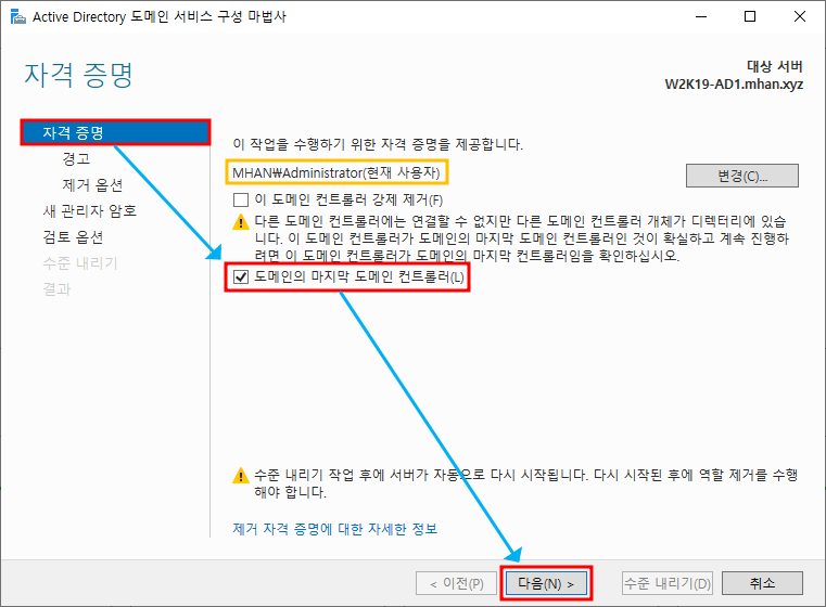※ 자격 증명 - 도메인의 마지막 도메인 컨트롤러 선택