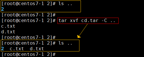 ※ cd.tar 아카이브 파일에서 d.txt, c.txt 파일 삭제