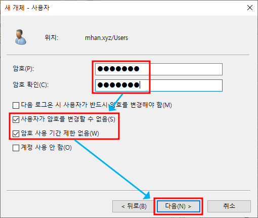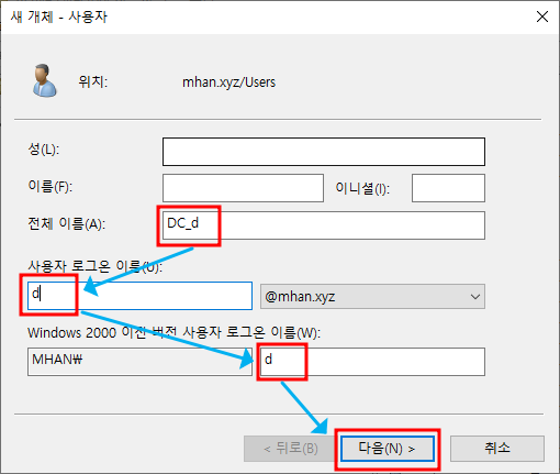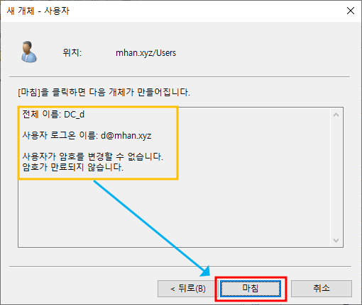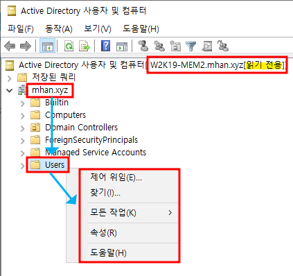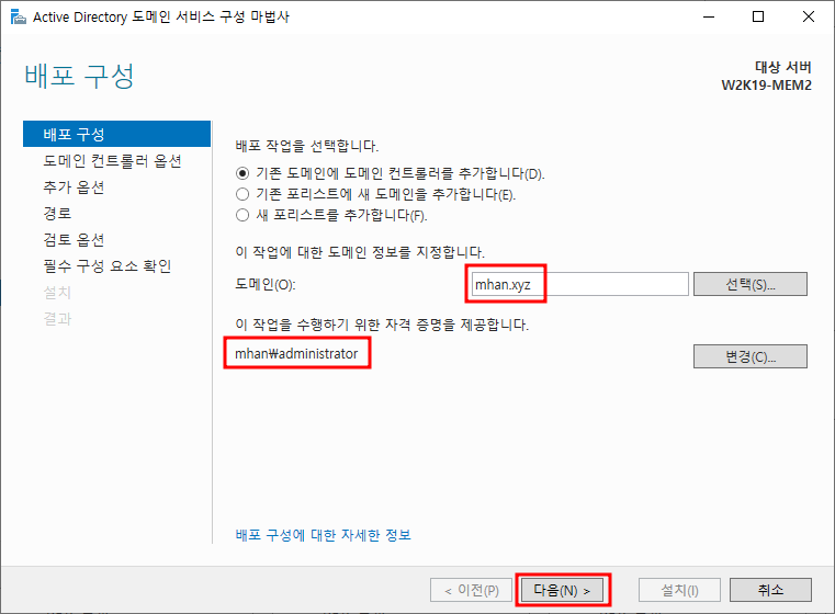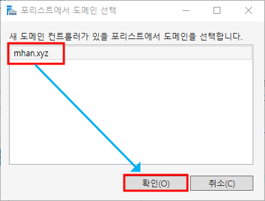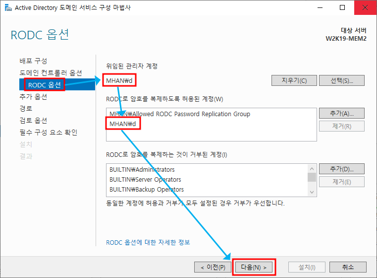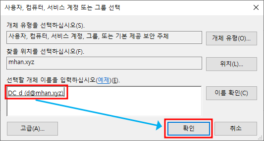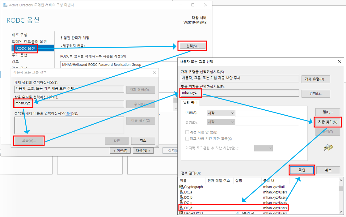 ※ RODC 옵션 - 위에서 생성한 mhan.xyz의 계정 d 선택하여 추가