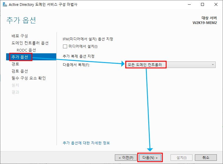 ※ 추가 옵션 - 모든 도메인 컨트롤러에서 복제하도록 선택