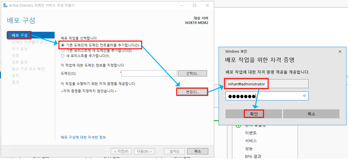 - 자격 증명 루트 도메인 컨트롤러의 Administrator로 변경
