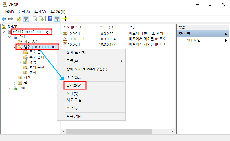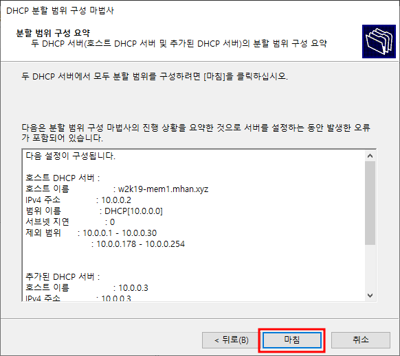 AD 환경에서 두 대의 DHCP 서버를 운영하도록 구성해보자.