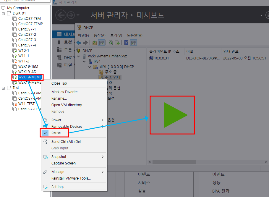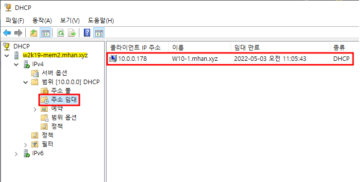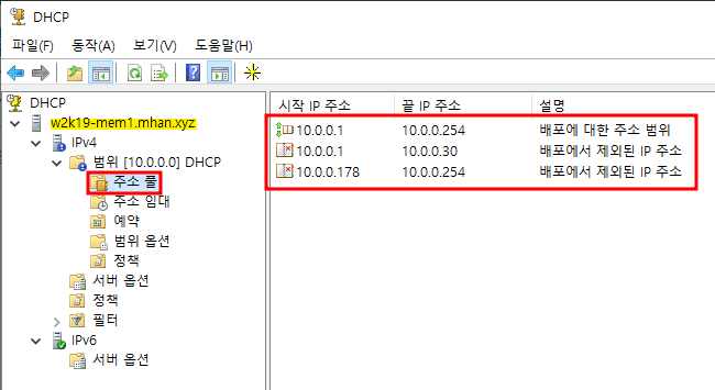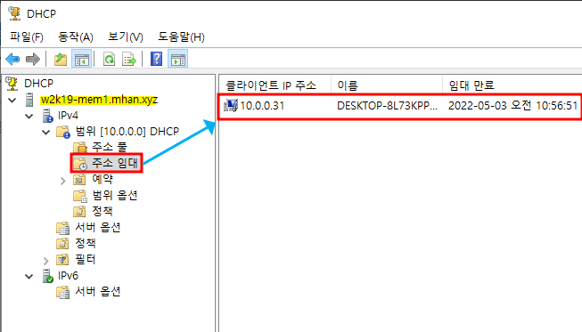 ※ 받아온 IP를 확인해 보면 10.0.0.31을 받아온 것을 확인할 수 있다. 즉, MEM1 서버에서 받아왔다.