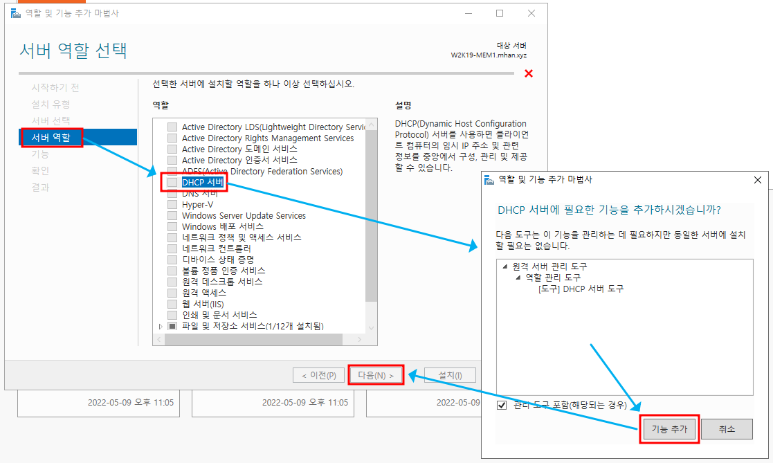 2.1. DHCP 역할 설치 (MEM1, MEM2)