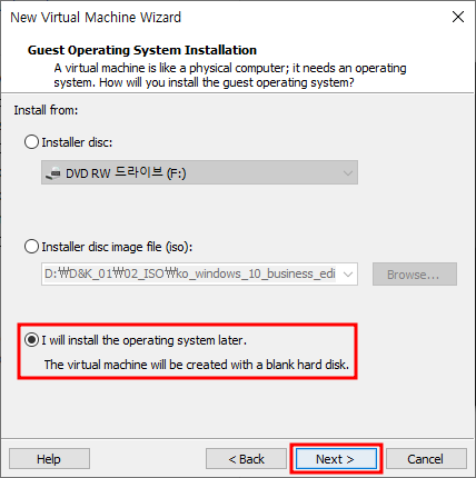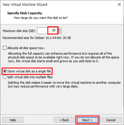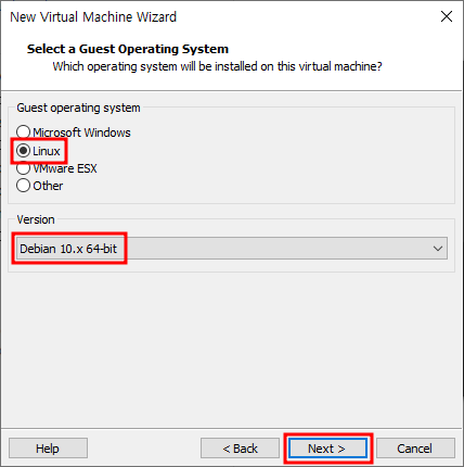 ※ VM 생성 후에 ISO 파일 넣도록 설정 및 OS 선택 (Linux-Debian 10.x 64-bit로 생성)